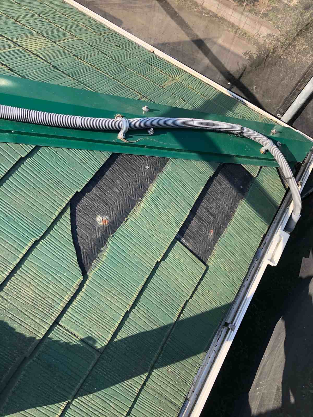 水辺が近くにあり住まいの苔や汚れが気になっていたところ、一部屋根材が剥がれ落ちているのを見つけご相談頂きました。
